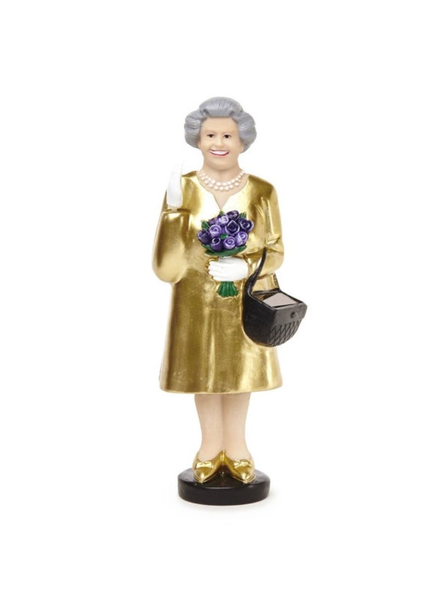 Aurinkokennolla toimiva kuningatar patsas vilkuttaa saadessaan energiaa valosta.