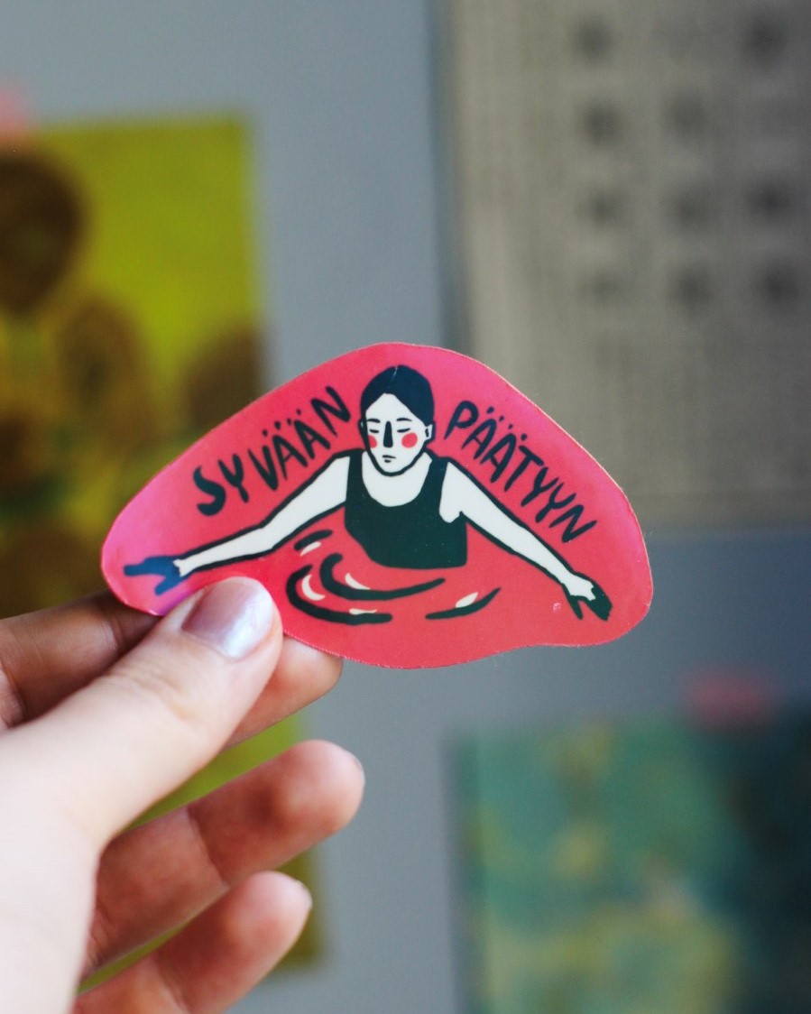 Hyppää syvään päätyyn ja koristele tällä tarralla esimerkiksi läppärisi. Vinyylitarrassa on hologrammimainen kiilto ja se kestää jonkin verran vettä. Tarran koko on noin 4,7 cm x 8,3 cm.